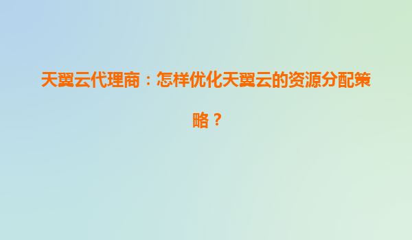 天翼云代理商:如何优化天翼云的资源分配策略 随着企业数字化转型的加速,云计算资源的高效分配成为提升业务竞争力的关键。作为中国电信旗下的云计算服务品牌,天翼云凭借其强大的基础设施和丰富的行业经验,为...