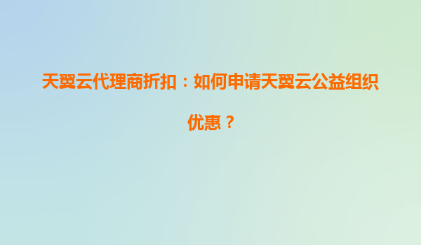 2025-07-06天翼云代理商折扣:如何申请天翼云公益组织优惠? 一、天翼云的核心优势 天翼云作为中国电信旗下的云计算品牌,凭借央企背景和技术实力,在云服务领域具有显著优势: 安...