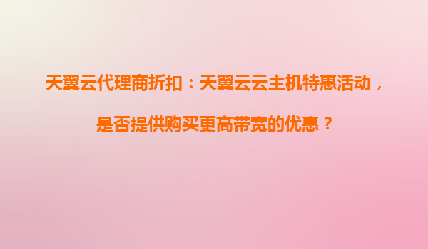 天翼云代理商折扣:天翼云云主机特惠活动,是否提供购买更高带宽的优惠? 一、天翼云的核心优势 天翼云是中国电信旗下的云计算品牌,凭借运营商级的资源和技术能力,为企业和个人用户提供稳定、安全、高效...
