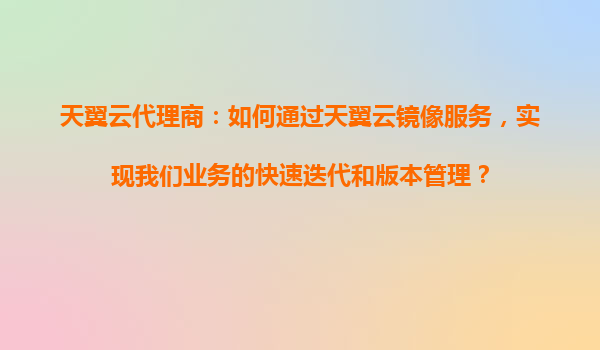2025-10-26天翼云代理商:如何通过天翼云镜像服务实现业务快速迭代和版本管理 一、天翼云镜像服务的核心价值 在数字化转型的浪潮中,企业需要快速响应市场变化,天翼云镜像服务(ImageManagementService)作为云计算...