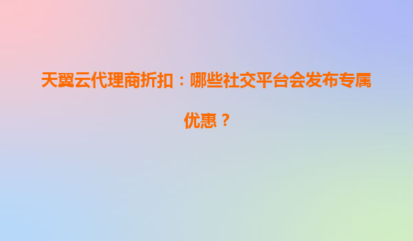2025-07-06天翼云代理商折扣:哪些社交平台会发布专属优惠? 一、天翼云与代理商的优势解析 天翼云作为中国电信旗下的云计算服务品牌,凭借强大的基础设施、稳定的网络性...