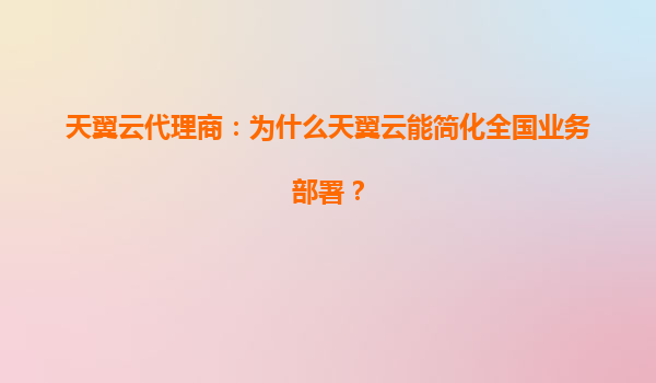 2025-07-06天翼云代理商:为什么天翼云能简化全国业务部署? 一、引言:数字化转型中的业务部署挑战 在数字化浪潮下,企业全国化业务部署面临资源分散、运维复杂、成本高昂等痛点。天翼云作为中国电信旗下的云计算服...