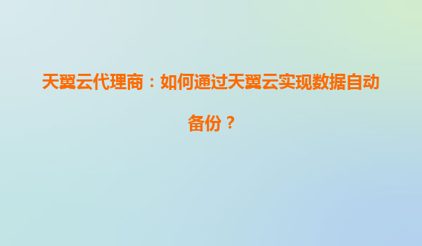 2025-07-05天翼云代理商:如何通过天翼云实现数据自动备份? 引言 在数字化时代,数据已成为企业的核心资产。如何确保数据安全、高效备份,是企业IT管理的重要课题。天翼云作为中国电信旗下的云计算服务品牌,凭借其...