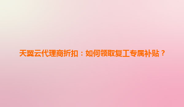 2025-07-02天翼云代理商折扣:如何领取复工专属补贴? 一、引言:企业复工的数字化需求 随着疫情后经济的逐步复苏,企业复工复产加速推进,数字化转型成为提升竞争力的关键。云计算作为数字化基础...