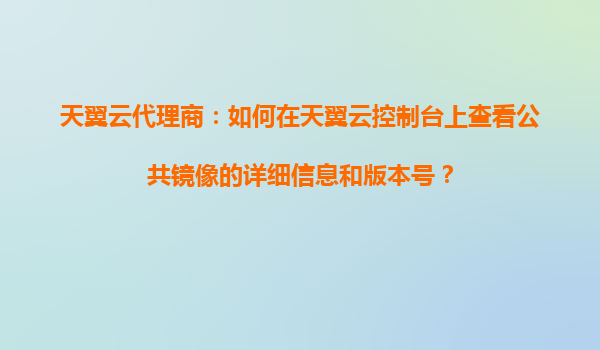 2025-10-25天翼云代理商指南:如何查看公共镜像的详细信息和版本号 作为中国电信旗下的云计算服务品牌,天翼云凭借其强大的基础设施、安全可靠的服务以及丰富的云产品矩阵,已成为众多企业和个人用户的首选云平台。对于代...