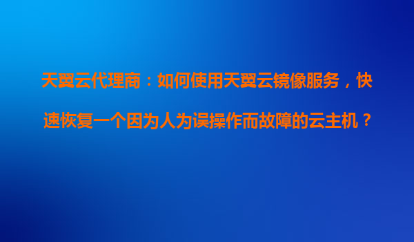 2025-10-25天翼云代理商指南:如何利用天翼云镜像服务快速恢复故障云主机 前言 在日常运维中,云主机因人为误操作导致故障的情况时有发生。天翼云镜像服务结合代理商的本地化服务能力,能够为企业提供高效的灾备恢复解决...