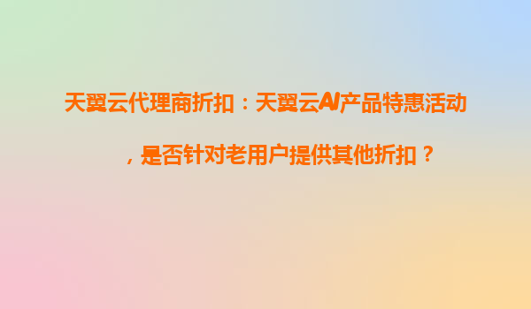 2025-10-25天翼云AI产品特惠活动解析:老用户专属折扣与天翼云核心优势 一、活动标题解读:天翼云AI产品特惠与代理商折扣 标题“天翼云代理商折扣:天翼云AI产品特惠活动”明确传递了三个关键信息: 合...