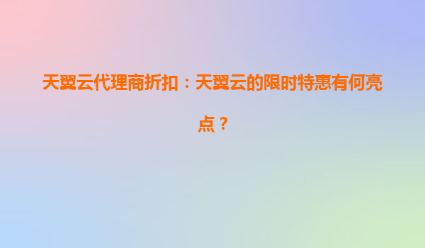 2025-06-30天翼云代理商折扣:天翼云限时特惠的亮点解析 一、天翼云限时特惠的核心优势 天翼云作为中国电信旗下的云计算品牌,凭借央企背景和强大的基础设施能力,持续为...