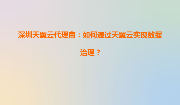 2025-06-30#天翼云数据治理解决方案 下面是我为您编写的关于深圳天翼云代理商如何通过天翼云实现数据治理的专业文章: 数据治理:企业数字化转型的核心 ...