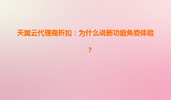 天翼云代理商折扣:为什么说新功能免费体验? 一、引言:免费体验背后的战略价值 在云计算市场竞争白热化的今天,天翼云通过代理商体系推出"新功能免费体验"策略,表面看是让利用户,实则是...