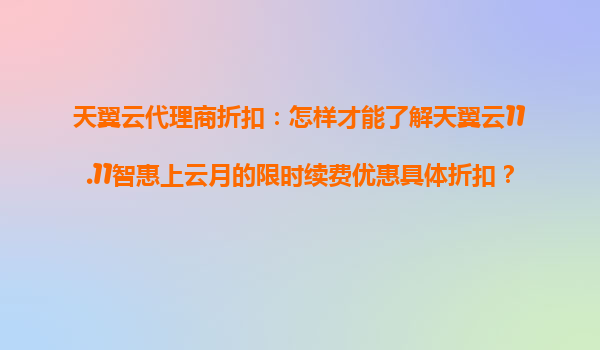 2025-10-25天翼云代理商折扣:如何了解天翼云11.11智惠上云月限时续费优惠? 一、天翼云11.11智惠上云月活动简介 每年的11月11日不仅是电商狂欢节,也是云计算行业的促销高峰期。天翼云作为中国电信旗下的云计算...