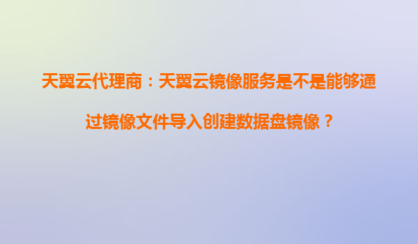 天翼云镜像服务的优势:通过镜像文件导入创建数据盘镜像 一、天翼云镜像服务的核心功能 天翼云作为中国电信旗下的云计算服务品牌,其镜像服务(ImageService)为用户提...