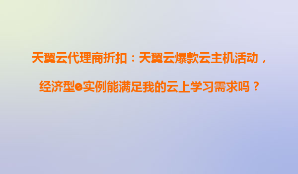2025-10-24天翼云代理商折扣:天翼云爆款云主机活动,经济型e实例能否满足云上学习需求? 一、天翼云经济型e实例的核心优势 随着云计算技术的普及,越来越多的用户选择云...
