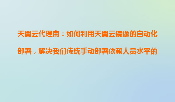 2025-10-24天翼云代理商:利用镜像自动化部署解决传统手动部署痛点 传统手动部署的挑战 在数字化转型浪潮中,企业IT基础设施的快速部署与运维效率成为核心竞争力。然而,...