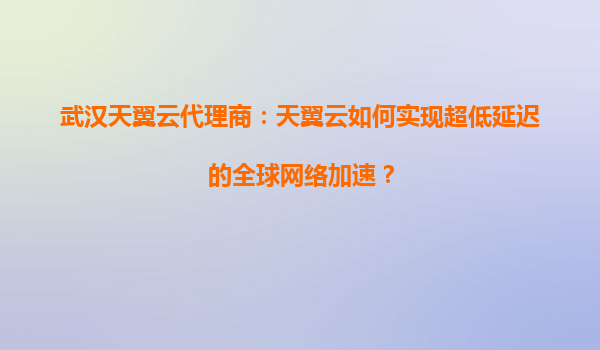 2025-06-20天翼云如何实现超低延迟的全球网络加速?武汉代理商深度解析 一、全球网络加速的挑战与需求 在全球化商业环境中,跨国企业、在线游戏、实时金融交易等领域对网络延迟的敏感度达到毫秒级...