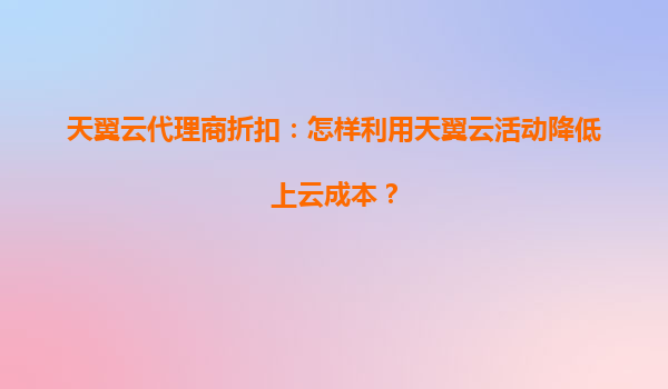 2025-06-20智选天翼云:巧用代理商折扣与活动策略降低上云成本 上云成本优化的战略价值 在数字化转型浪潮中,企业上云已成必然选择,但成本管控始终是核心挑战。天翼云作为中国电信旗下云服务品牌,通过创新...