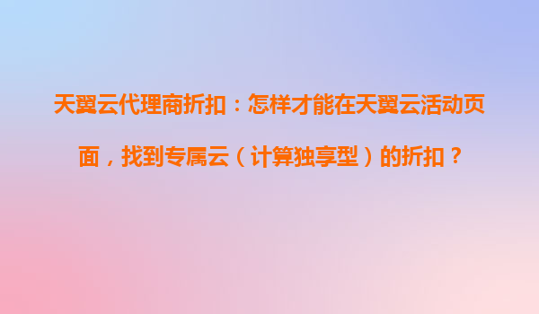 2025-10-24如何在天翼云活动页面找到专属云(计算独享型)的代理商折扣? 一、天翼云与代理商合作的背景 天翼云作为中国电信旗下的云计算品牌,凭借其强大的基础设施、安全可靠的服务以及灵活...