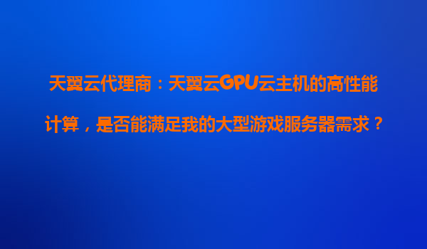 2025-10-24天翼云代理商:天翼云GPU云主机的高性能计算,是否能满足大型游戏服务器需求? 一、大型游戏服务器的核心需求 在探讨天翼云GPU云主机是否适合游戏服务器前,需明确大型游戏服务器的关键需求: 高并发处...