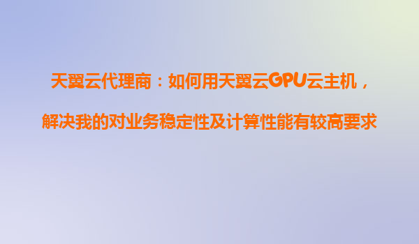 2025-10-24天翼云代理商:如何用天翼云GPU云主机满足高稳定性与高性能计算需求 引言 在数字化转型的浪潮中,企业对云计算的需求日益增长,尤其是对业务稳定性和计算性能要求较高的场景。天翼云作为国内领先的云服务提...