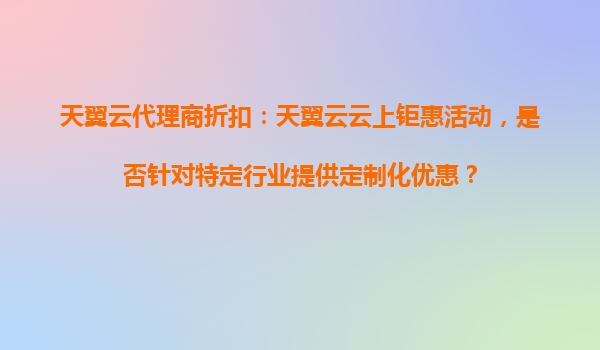 2025-10-24天翼云代理商折扣:行业定制化优惠解析 天翼云作为中国电信旗下云计算服务品牌,凭借强大的基础设施和本土化服务能力,持续为各行业客户提供高效、安全的云解决方案。近期推出的“云上钜惠”活动,不仅通过代理商渠...