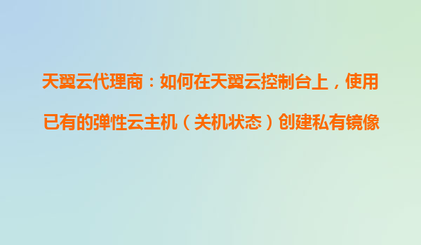 天翼云代理商指南:如何通过控制台使用关机状态的弹性云主机创建私有镜像 一、天翼云的核心优势 在开始操作指南前,首先了解天翼云的三大核心优势: 安全可靠:依托中国电信国家级基础设...