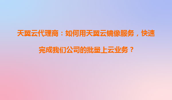 2025-10-24天翼云代理商指南:如何利用天翼云镜像服务加速企业批量上云 一、天翼云镜像服务的核心优势 作为中国电信旗下的云计算服务品牌,天翼云凭借以下优势成为企业批量上云的首选: ...