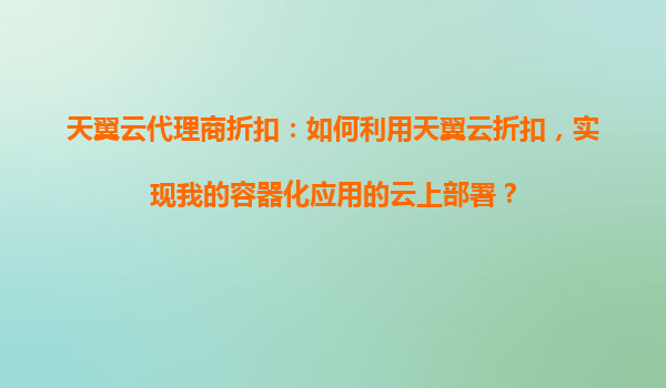 2025-10-24天翼云代理商折扣:如何利用天翼云折扣实现容器化应用的云上部署 在当今数字化转型的浪潮中,容器化技术已成为企业应用部署的主流选择。借助天翼云强大的基础设施和代理商折扣政策,企业可以更低成本、更高效率地实...