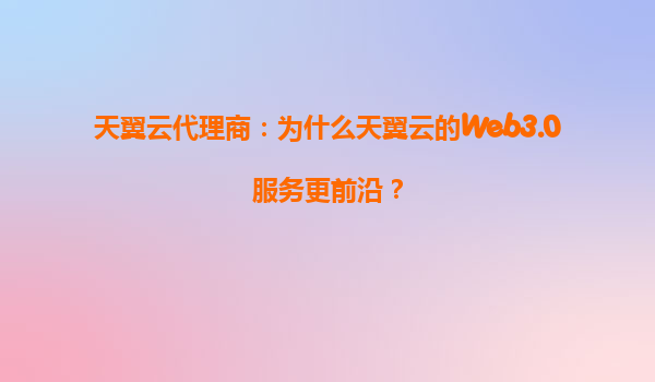 天翼云代理商视角:为什么天翼云的Web3.0服务更前沿? 在数字化转型的浪潮中,Web3.0以其去中心化、数据主权回归和智能合约等特性,正重塑互联网生态格局。作为中国电信旗下的云计算服务商,天...