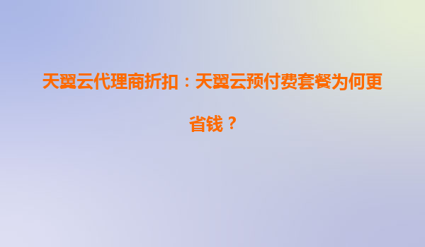 2025-06-12天翼云预付费套餐为何更省钱?深度解析代理商折扣优势 一、预付费模式:成本优化的智慧之选 在云计算服务领域,付费模式主要分为预付费(包年包月)和后付费(按量计费)两种。天翼云预...
