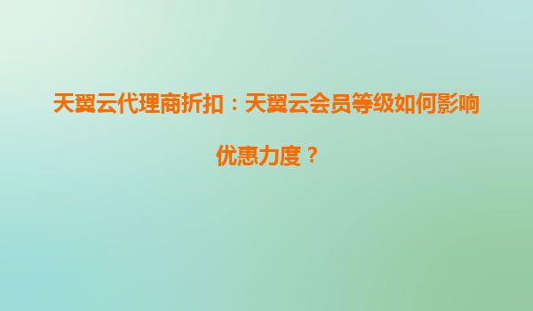天翼云代理商折扣解析:会员等级如何影响您的优惠力度? 一、天翼云会员体系:层级分明的权益阶梯 天翼云将会员划分为普通会员、白银会员、黄金会员、铂金会员、钻石会员五大等级,形成...