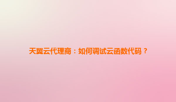 2025-06-12天翼云代理商指南:如何高效调试云函数代码 一、云函数调试的重要性 在Serverless架构中,云函数(FunctionasaService)是核心执行单元。作为天翼云代理商,高效调试代码直接影响客户...
