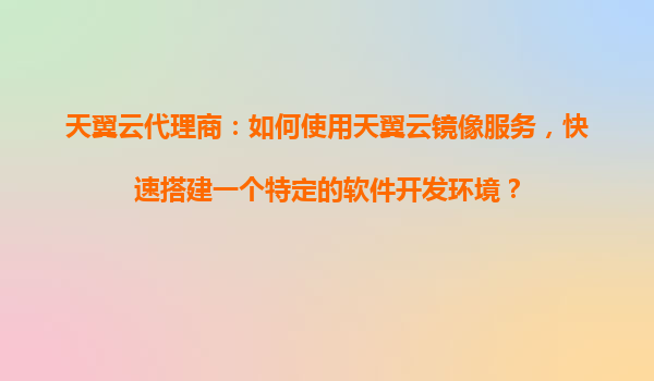 2025-10-23天翼云代理商指南:如何使用天翼云镜像服务快速搭建特定软件开发环境 一、天翼云镜像服务的核心优势 作为中国电信旗下的云计算品牌,天翼云提供高性能、高可用的镜像服务(ImageService),...