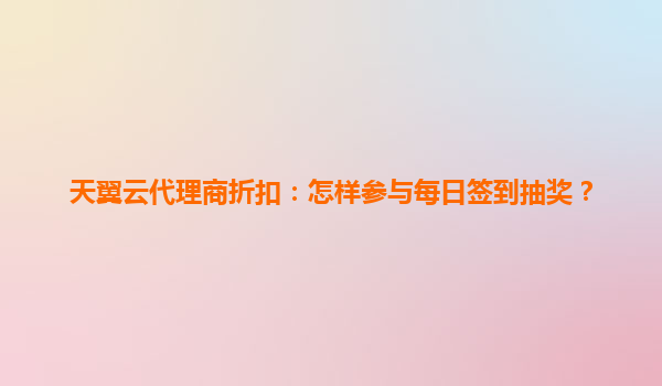 2025-06-09天翼云代理商折扣:怎样参与每日签到抽奖? 引言:双重福利助力企业上云 在数字化转型浪潮中,天翼云凭借央企背景与技术创新优势,为企业提供高性价比的云服务解决方案。其中代理商折扣政策与每日签到抽奖活...