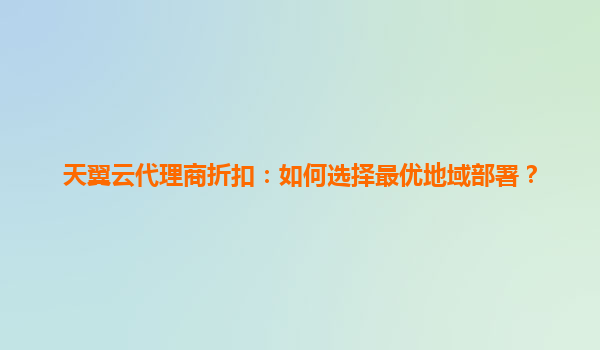 2025-06-09天翼云代理商折扣:如何选择最优地域部署? 在数字化转型浪潮中,云计算成为企业核心基础设施。天翼云作为国内领先的云服务商,结合遍布全国的代理商网络,为企业提供高性价比的云解决方案。本...