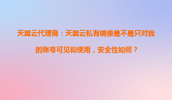 天翼云私有镜像安全性解析:仅对您的账号可见使用的优势 在云计算时代,数据安全和隐私保护是企业上云最关心的问题之一。天翼云作为中国电信旗下的云计算品牌,凭借其强大的基础设施和严格的安全管理体系,为企...