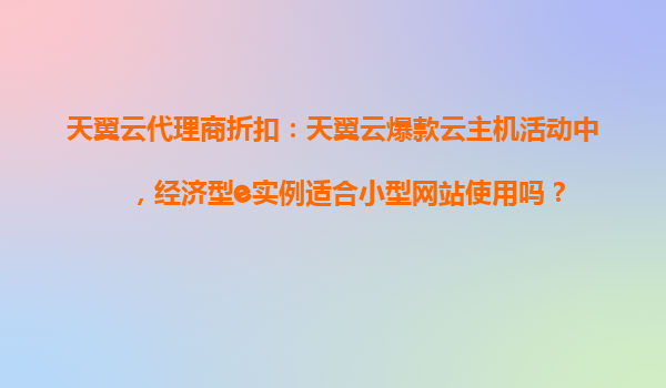 2025-10-22天翼云代理商折扣:经济型e实例是否适合小型网站使用? 一、天翼云经济型e实例的核心优势 在天翼云爆款云主机活动中,经济型e实例凭借以下特点成为小型网站的优选: 高性...