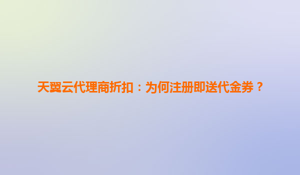 2025-06-07天翼云代理商折扣解析:注册即送代金券的战略深意 一、为何注册即送代金券?三大核心逻辑 1.零门槛体验云服务 新用户通过代金券可直接抵扣云服务器、存...
