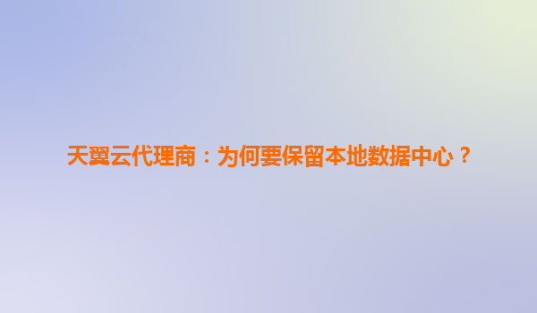 2025-06-07天翼云代理商:为何要保留本地数据中心? 数据主权与合规性保障 在数字化转型浪潮中,数据主权成为企业核心关切。天翼云代理商通过本地数据中心保留关键业务数据,完美满足金融、政务等行业的强监...