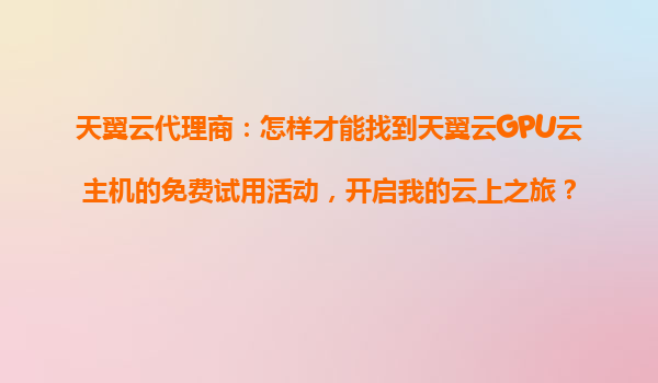 2025-10-22天翼云代理商指南:如何参与天翼云GPU云主机免费试用活动,开启您的云上之旅? 一、天翼云GPU云主机的核心优势 在数字化转型浪潮中,天翼云凭借其强大的基础设...