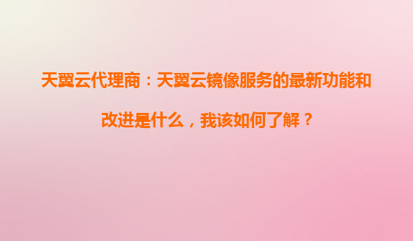 2025-10-22天翼云代理商:天翼云镜像服务的最新功能和改进解析 一、天翼云镜像服务的核心优势 作为中国电信旗下的云服务品牌,天翼云凭借其强大的基础设施和合规性保障,在镜像服务...
