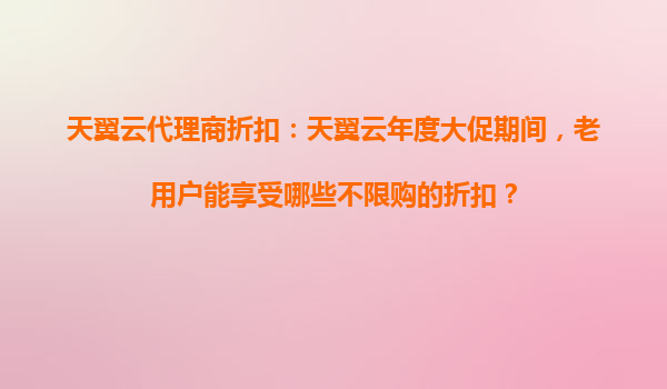 2025-10-22天翼云年度大促:老用户不限购折扣及代理商优势解析 一、天翼云年度大促销活动概览 每年年底,天翼云都会推出力度空前的年度大促活动,针对新老用户提供各种优惠政策。对于老用户而言,本次大促特别推...