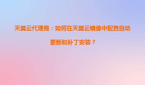 2025-10-22天翼云代理商指南:如何在天翼云镜像中配置自动更新和补丁安装 一、天翼云的核心优势 作为中国电信旗下的云计算服务品牌,天翼云凭借以下优势成为企业数字化转型的优选平台: 安全合规性:通...
