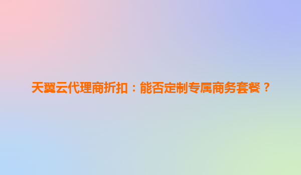 2025-06-06天翼云代理商折扣:企业如何定制专属商务套餐? 在数字化转型浪潮中,企业上云已成为提升竞争力的关键举措。面对多样化的业务需求,标准化的云服务套餐往往难以满足企业的个性化要求。许多企业...