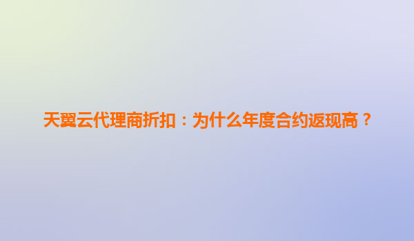 2025-06-05天翼云代理商折扣:年度合约返现高的背后逻辑 在云计算市场竞争日益激烈的今天,天翼云凭借其独特的资源优势和运营策略,为代理商伙伴提供了极具吸引力的折扣政策。其中,年度合约的高额返现机制尤其引人注...