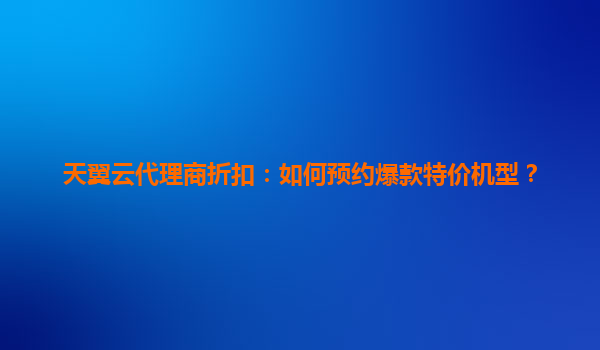 2025-06-05天翼云代理商折扣:为何整点抢购更划算? 在云计算服务市场竞争日益激烈的今天,天翼云凭借其独特优势成为众多企业的首选。通过代理商渠道购买天翼云服务不仅能享受官方优惠,更能在特定时段获...