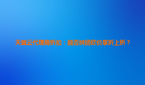 2025-06-05天翼云代理商折扣:拼团砍价能否实现折上折?深度解析与攻略 在数字化转型浪潮中,企业上云已成必然选择。面对众多云服务商,天翼云凭借独特优势脱颖而出,而通过代理商渠道获取折扣更是企业降...