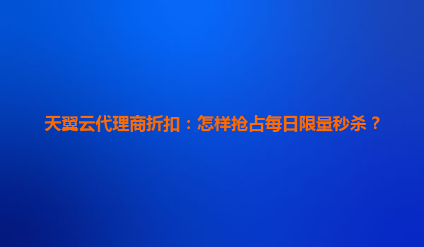2025-06-05天翼云代理商折扣攻略:如何智取每日限量秒杀 秒杀盛宴:天翼云代理商的超值机遇 在数字化转型浪潮中,天翼云凭借其央企背景与技术创新,已成为企业上云的首选平台。通过天翼云代理商推出的每日限量秒杀活动...