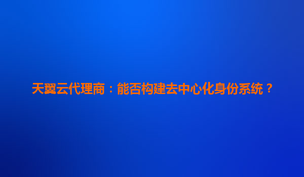 2025-06-05天翼云代理商:能否构建去中心化身份系统? 一、去中心化身份系统的核心价值 去中心化身份(DID)系统是数字身份演进的下一代形态,其核心在于将身份控制权归还用户,通过区块链等技术实...