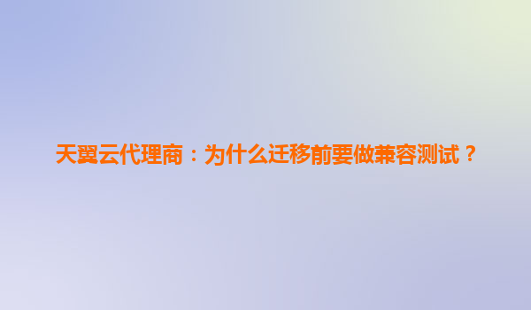 2025-06-05天翼云代理商:为什么迁移前必须做兼容测试? 一、云迁移的隐形挑战 当企业将业务系统迁移至天翼云时,常聚焦于资源弹性与成本优化,却容易忽视一个关键环节——兼容性测试。据行业数据...