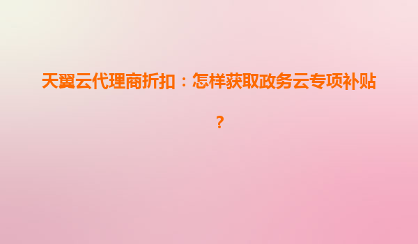 2025-06-04天翼云代理商如何获取政务云专项补贴?全面解析政策与优势 政务云转型浪潮中的机遇 在数字经济高速发展的今天,政务云平台已成为各级政府数字化转型的核心基础设施。天翼云作为国内政务...
